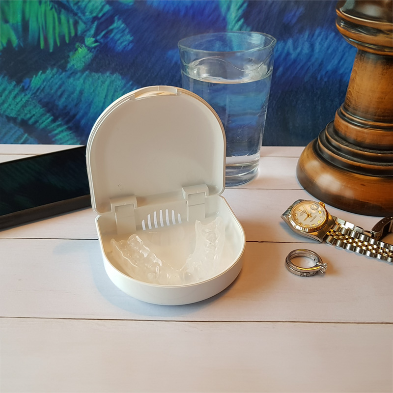 den harde basen forhindrer biting gjennom biteskinnen. CE-merket. Medisinsk teknologi klasse I. EKULF NightGuard leveres i pakke som inneholder oppbevaringsboks og brukermanual.