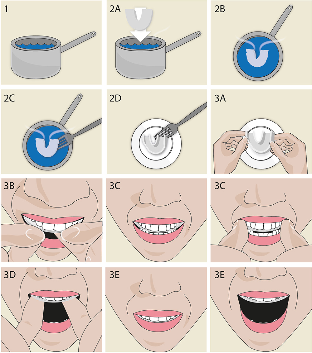 mykt formbart materiale på toppen og en hard base nederst. Det myke materialet på toppen danner seg rundt tennene og hindrer tanngnissing. De