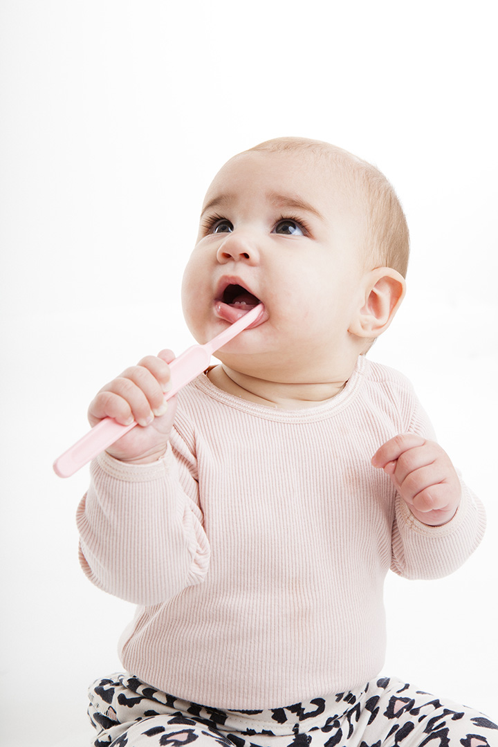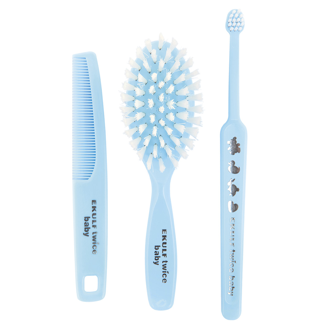 Tannbørsten: har et langt ergonomisk utformet skaft. Dette gjør det enklere å komme til alle tennenes overflater samt de bakre tennene. Børstehodet er litet og kompakt hvilket reduserer følelsen av å brække seg. Børsten har myke topprundede børstestrån som gir en funksjonell og skånsom tannpussing. Hårbørsten: har børstefibrer som er lagd av topprundede polyesterfibre som gir en myk og skånsom børsting for barnets følsomme hodebunn. Den høye børstestråkvaliteten gjør at børste beholder sin fleksibilitet lenge ved riktig bruk. Kammen: er en topprundet, liten og smidig kam. Hårbørsten og kammen kan og brukes for å hjelpe til å fjerne skurv. Samtlige håndtak er laged av polypropylen. Leveres i blisterforpakning. Finnes i fargene: lysegul, lysegrønn, lyseblå og lysrosa.