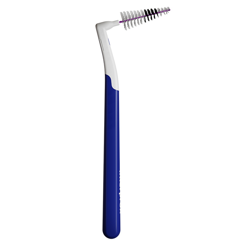 Interprox vinkel plus har et vinklet hode som forenkler rengjøringen fra både innsiden og utsiden av tannraden. Hver børste består av et kort 2-komponentskaft som gir god kontroll, samt en plasthette for å beskytte børsten. En mellomromsbørste skal aldri tvinges inn mellom tennene, men gli lett.